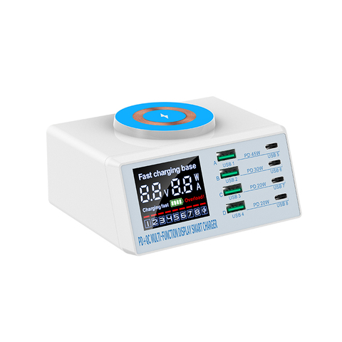 תחנת טעינה אלחוטית עם רכזת USB USB תצוגה חשמלי lcd תצוגת נסיעות שקע מתאם pd פונקציה לשימוש ביתי או במשרד